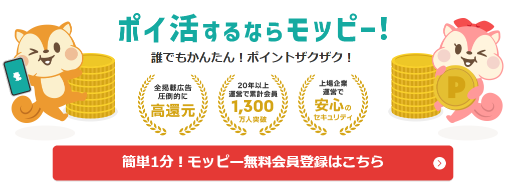 ちなみに、モッピーは株式会社セレスが運営するポイントサイトで、東証一部にも上場している企業です。